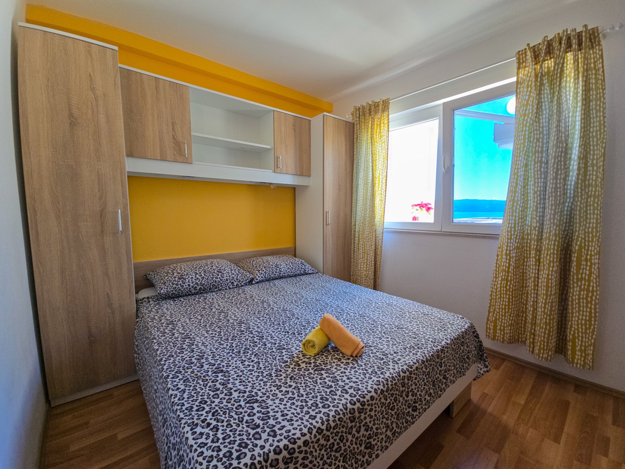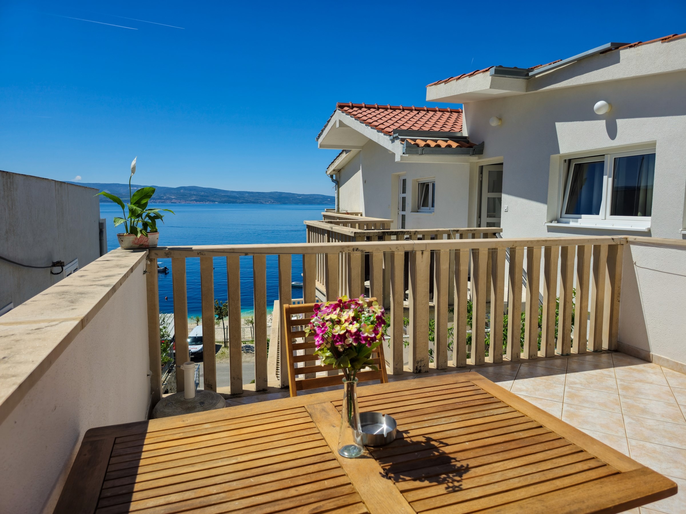 Two-bedroom apartment Neda – balcony is in house Neda in Omis, located right next to the beach and approximately 1000 m from the medieval town center of Omis. Restaurants, shops, bars and everything else you may need during your stay are available within walking distance. Other beaches, both pebble and sandy, are also located within walking distance from the apartment. The apartment has a private entrance and it can accommodate up to 4 persons in two bedrooms and in approximately 45 m² of space. Two-bedroom apartment Neda – balcony features two bedrooms, both with double beds, an equipped kitchen with a dining room and a sitting area, one bathroom, a balcony with a stunning view of the sea. As for additional amenities, Wi-Fi, SAT/TV, an outdoor sitting or dining area (balcony) and air-conditioning are available. Grill/BBQ facilities are available next to the house, in an area shared with other guests in the house.